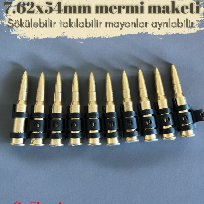 - Yüksek kaliteli, detaylı 7.62×54 mm mermi maketi.